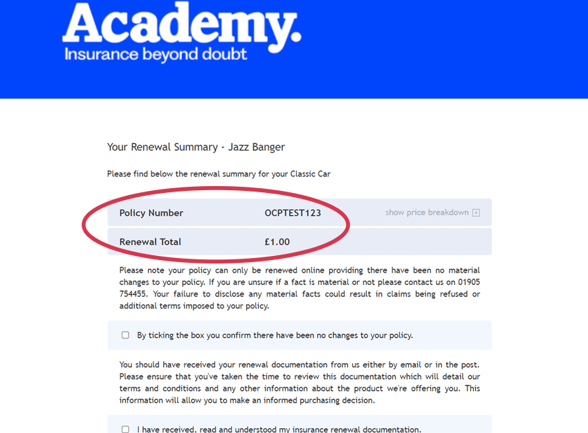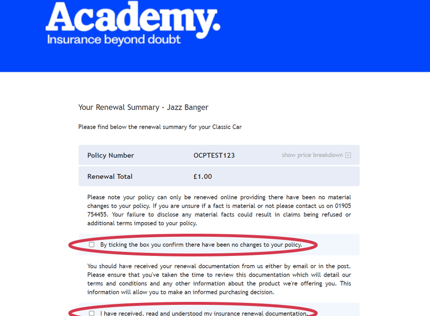 Before you continue, please read all the renewal documentation provided. If any changes are required, please contact the Academy customer service team immediately. If everything is correct and meets your needs, you can continue to renew online.