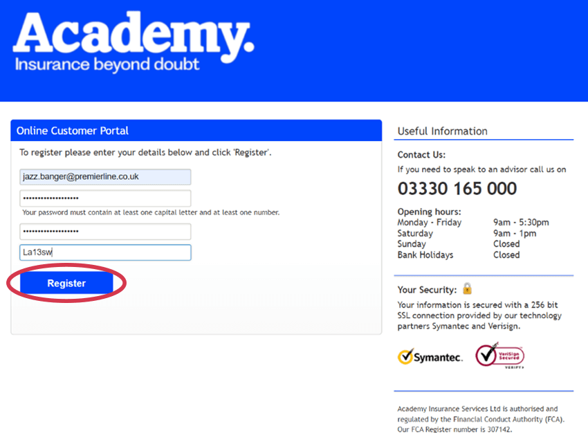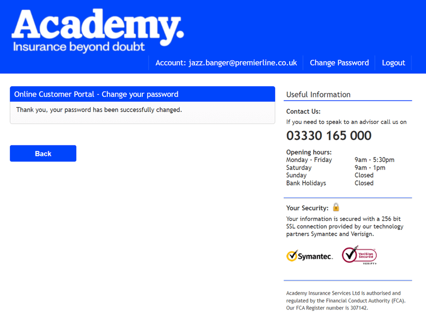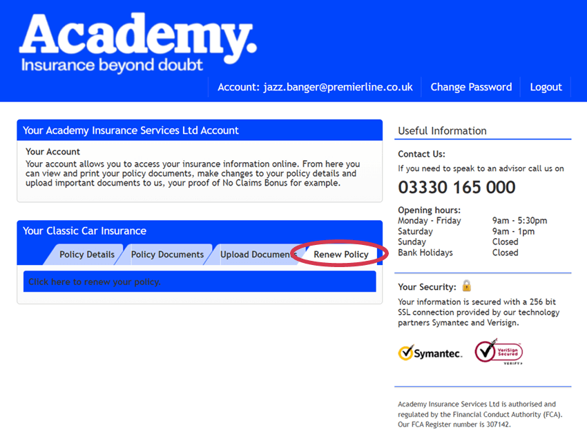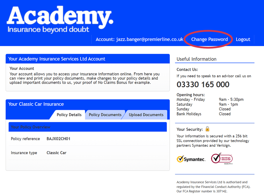 Once you have activated your account, check your email address and insured name is displayed correctly. If it is incorrect, please get in touch with the customer service team immediately.