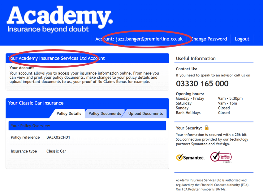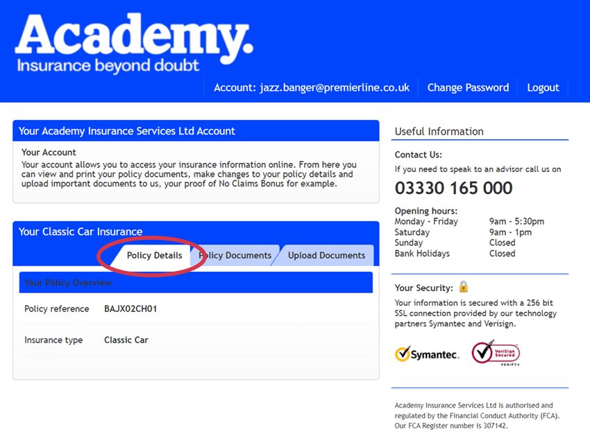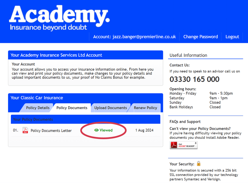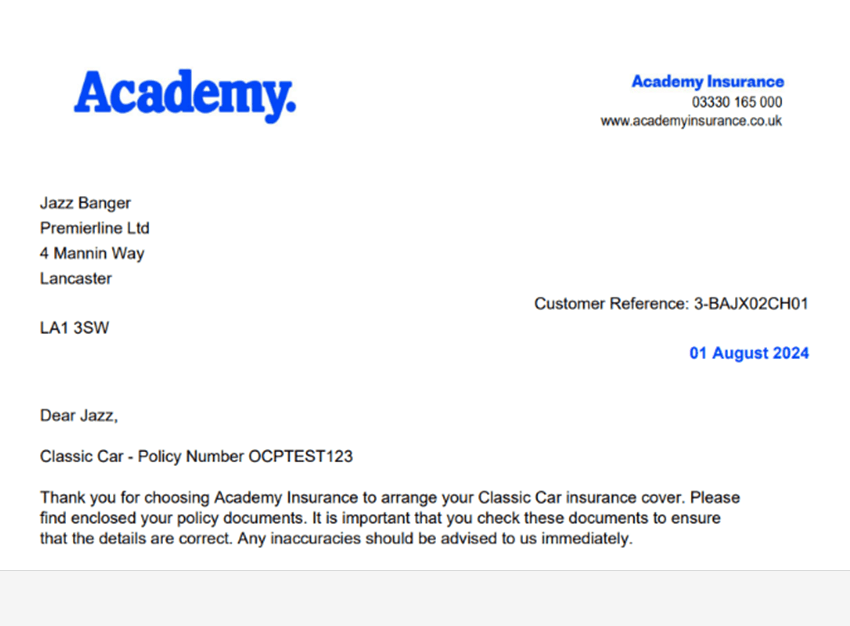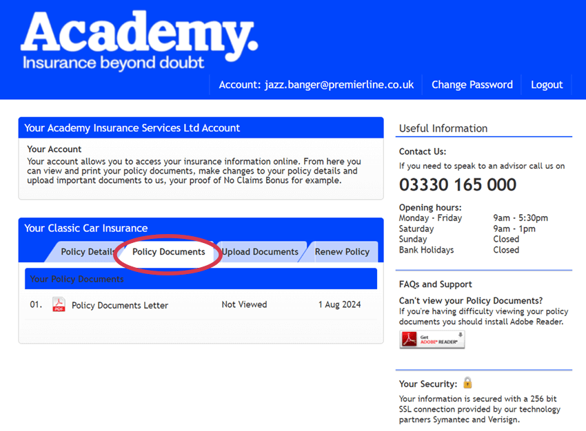 The Academy customer portal allows you to view and download your insurance documentation.