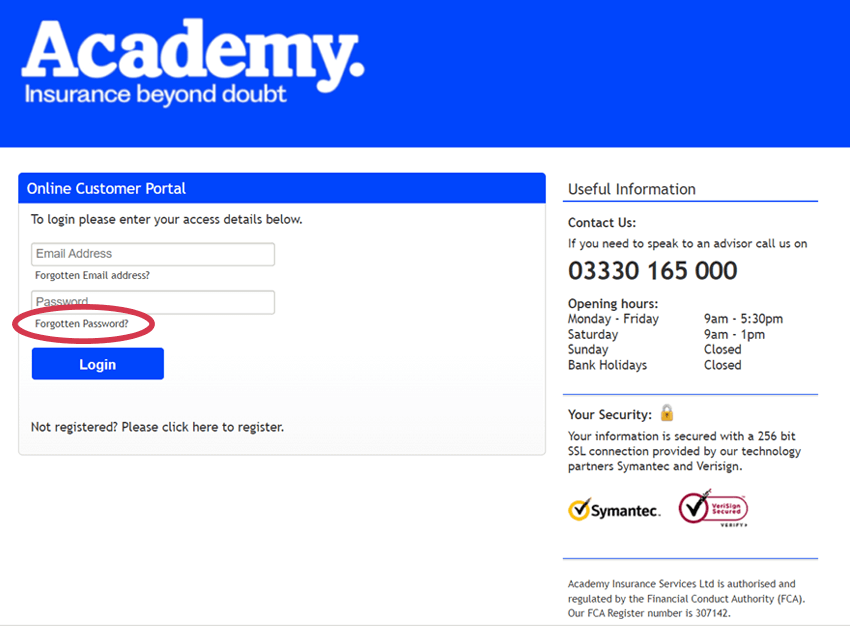 If you can’t remember your password, you can reset it from the Academy customer portal login page.